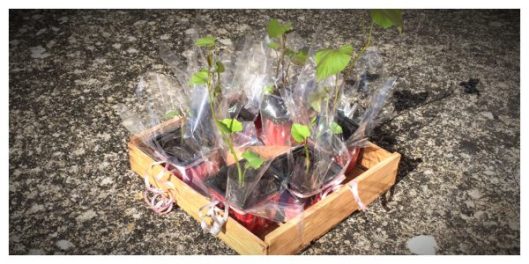Avec les enfants, on a aussi présenté chaque maman avec une petite plante… un pied de patate douce. Pourquoi la patate douce?